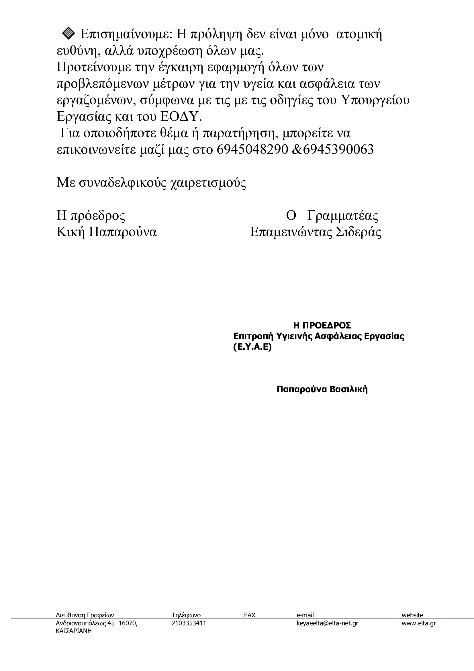 ΚΕΥΑΕ ΕΛΤΑ • 2 ΙΟΥΝΙΟΥ 2025Ανακοίνωση Επιτροπής Υγείας και Ασφάλειας Εργαζομένων ΕΛΤΑ για τη θερμική καταπόνηση