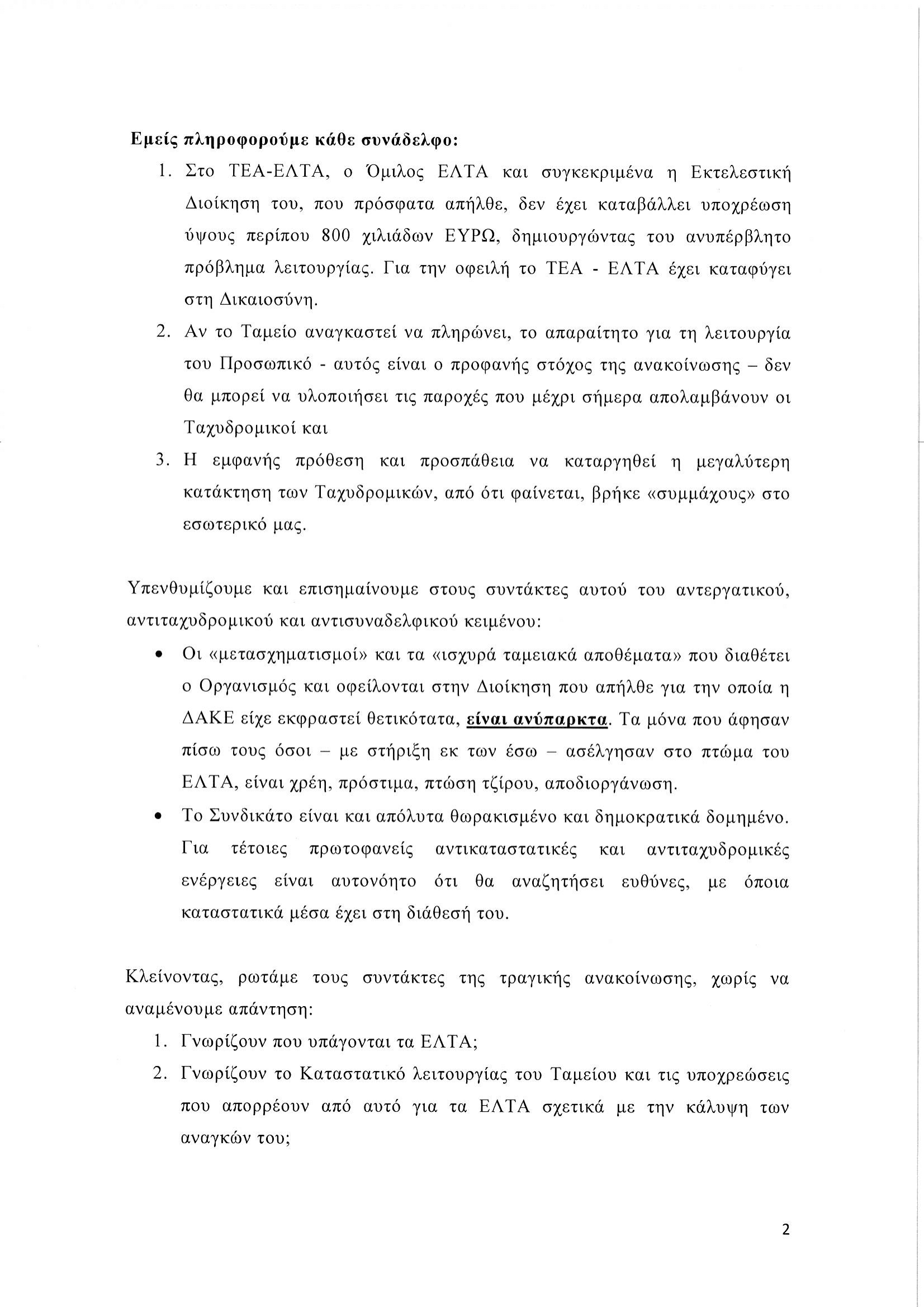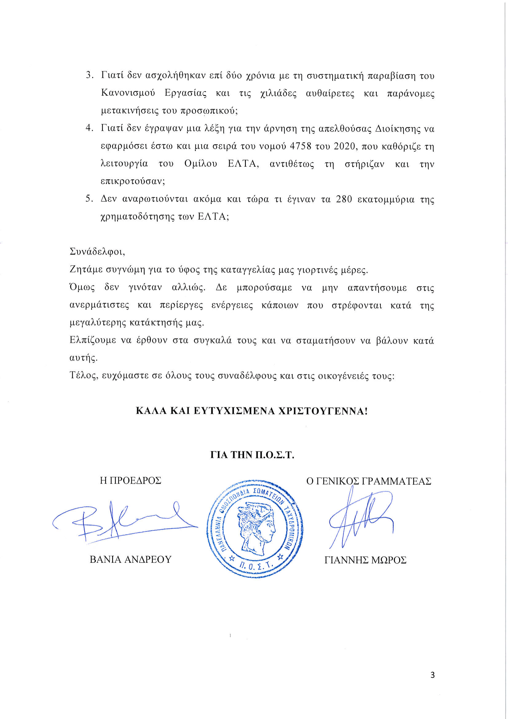 ΚΑΤΑΓΓΕΛΙΕΣ • 23 ΔΕΚΕΜΒΡΙΟΥ 2022Ανακοίνωση καταγγελία της Π.Ο.Σ.Τ. κατά ανακοίνωσης της ΔΑΚΕ για το ΤΕΑ ΕΛΤΑ