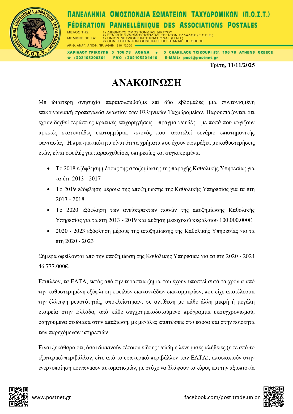 ΑΝΑΚΟΙΝΩΣΕΙΣ • 11 ΝΟΕΜΒΡΙΟΥ 2025