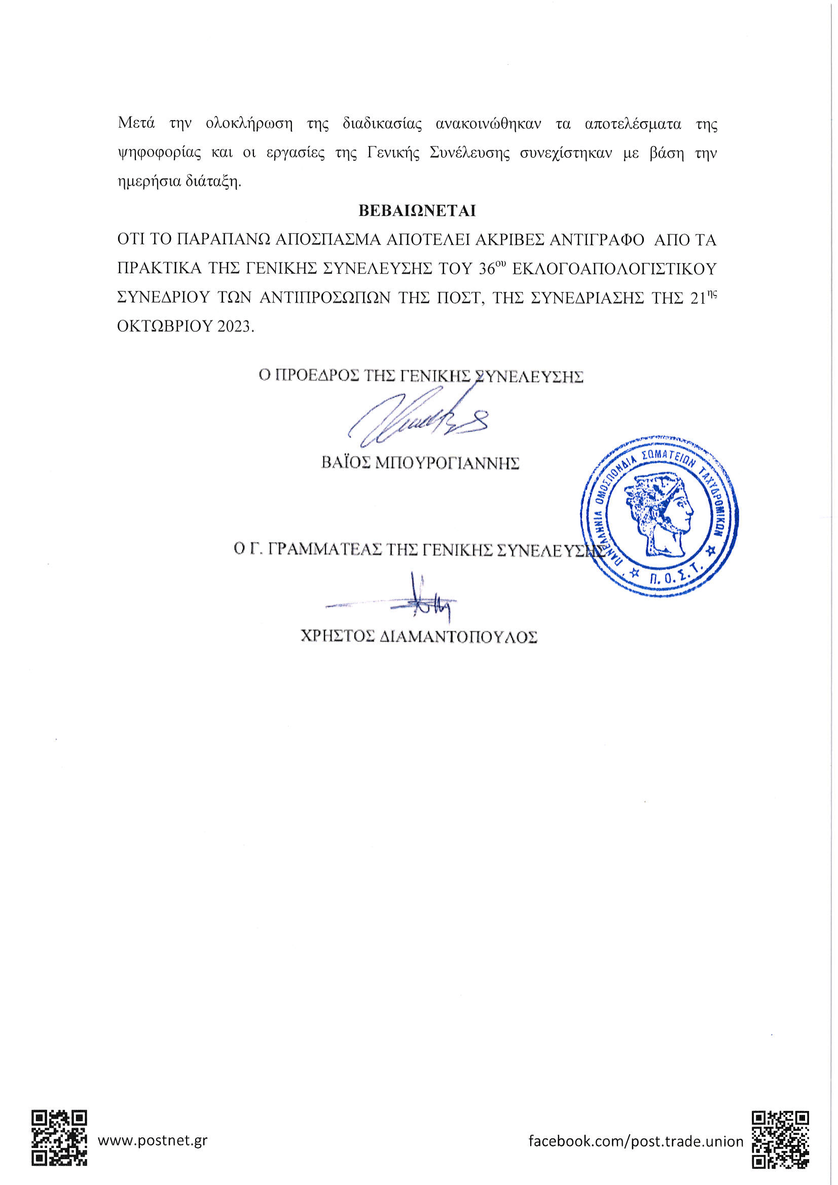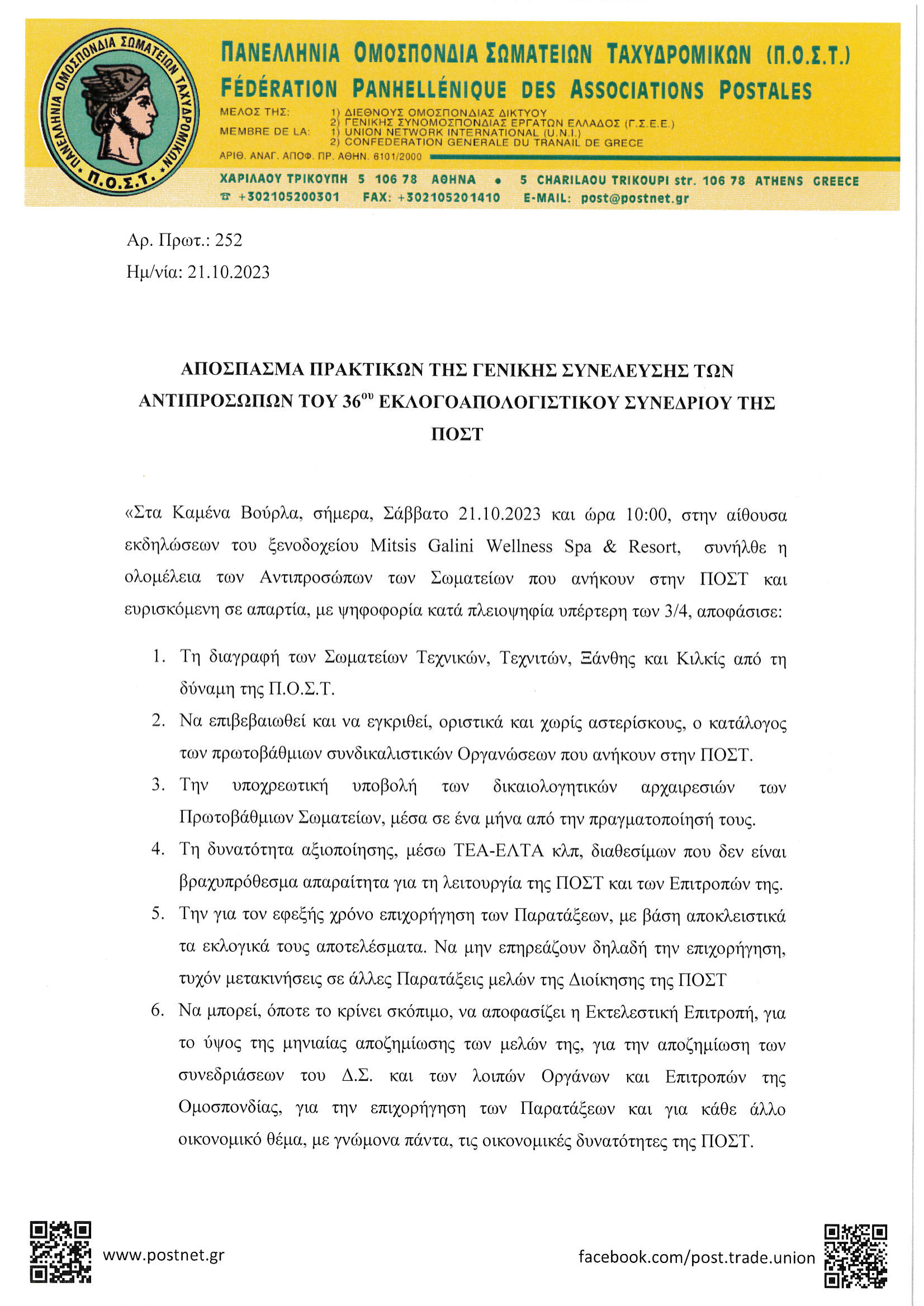 Αποφάσεις 36ου Εκλογοαπολογιστικού Συνεδρίου της Π.Ο.Σ.Τ.