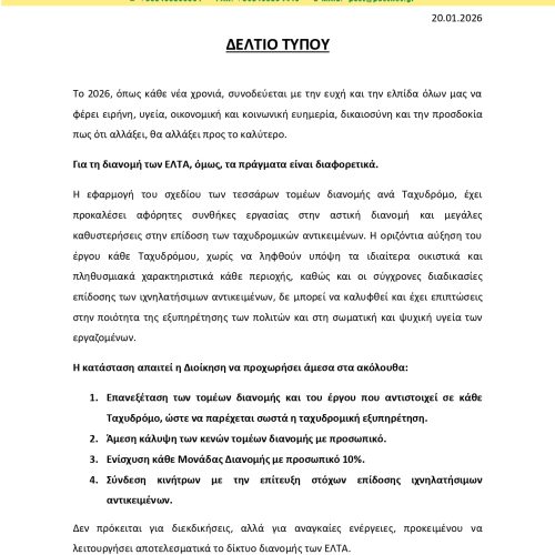 ΔΕΛΤΙΑ ΤΥΠΟΥ • 1 ΟΚΤΩΒΡΙΟΥ 2025