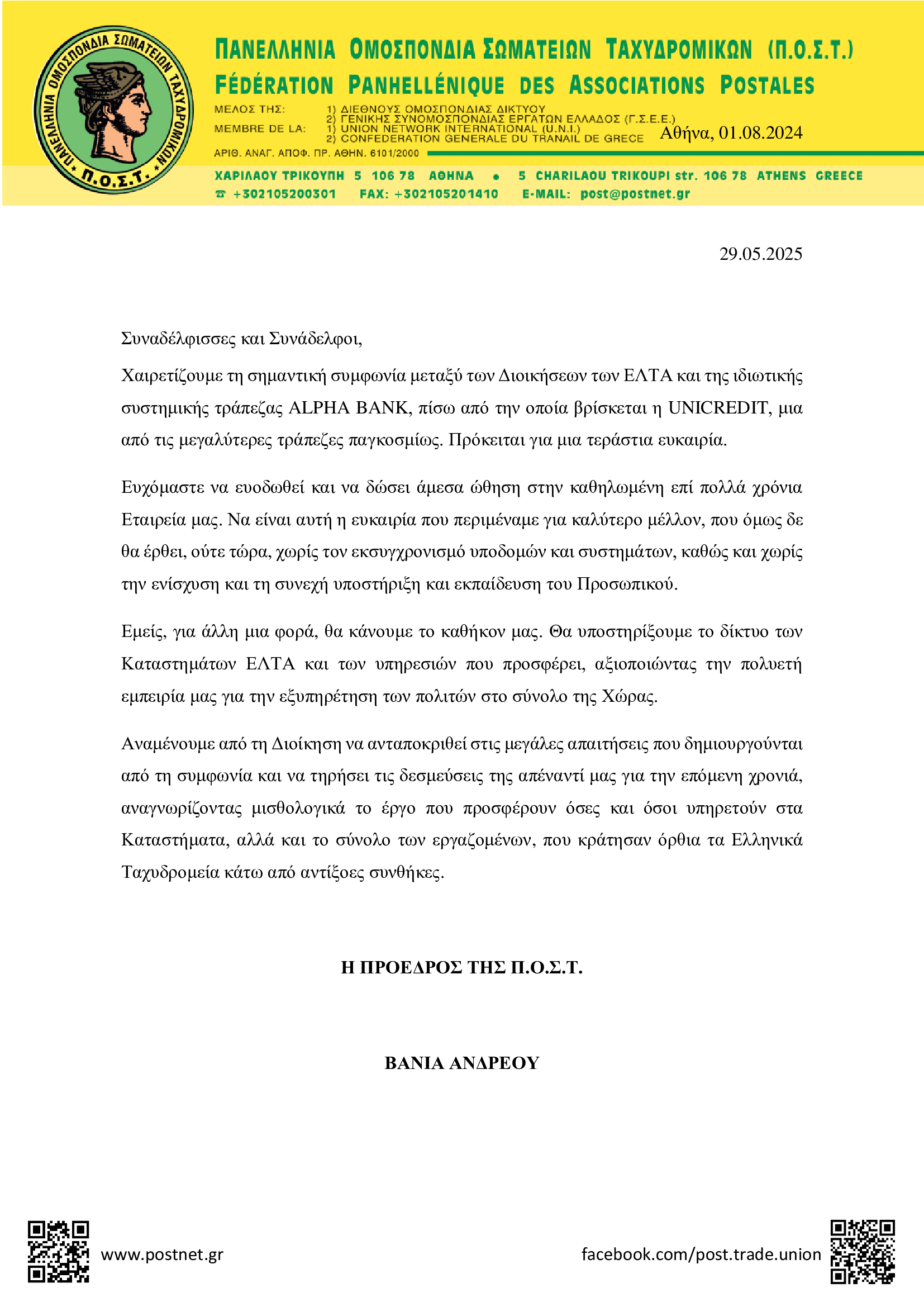 Επιστολή διαμαρτυρίας Συλλόγου Υπαλλήλων Ομίλου ΕΛΤΑ Κεντρικής Στερεάς Ελλάδας