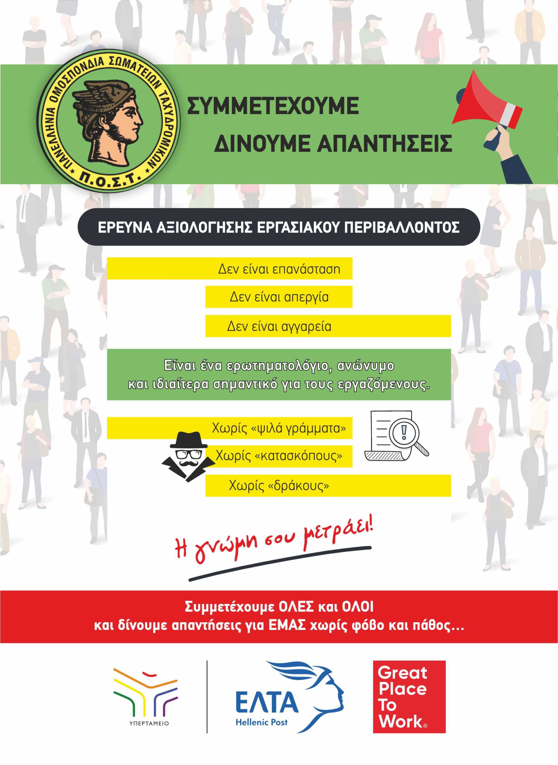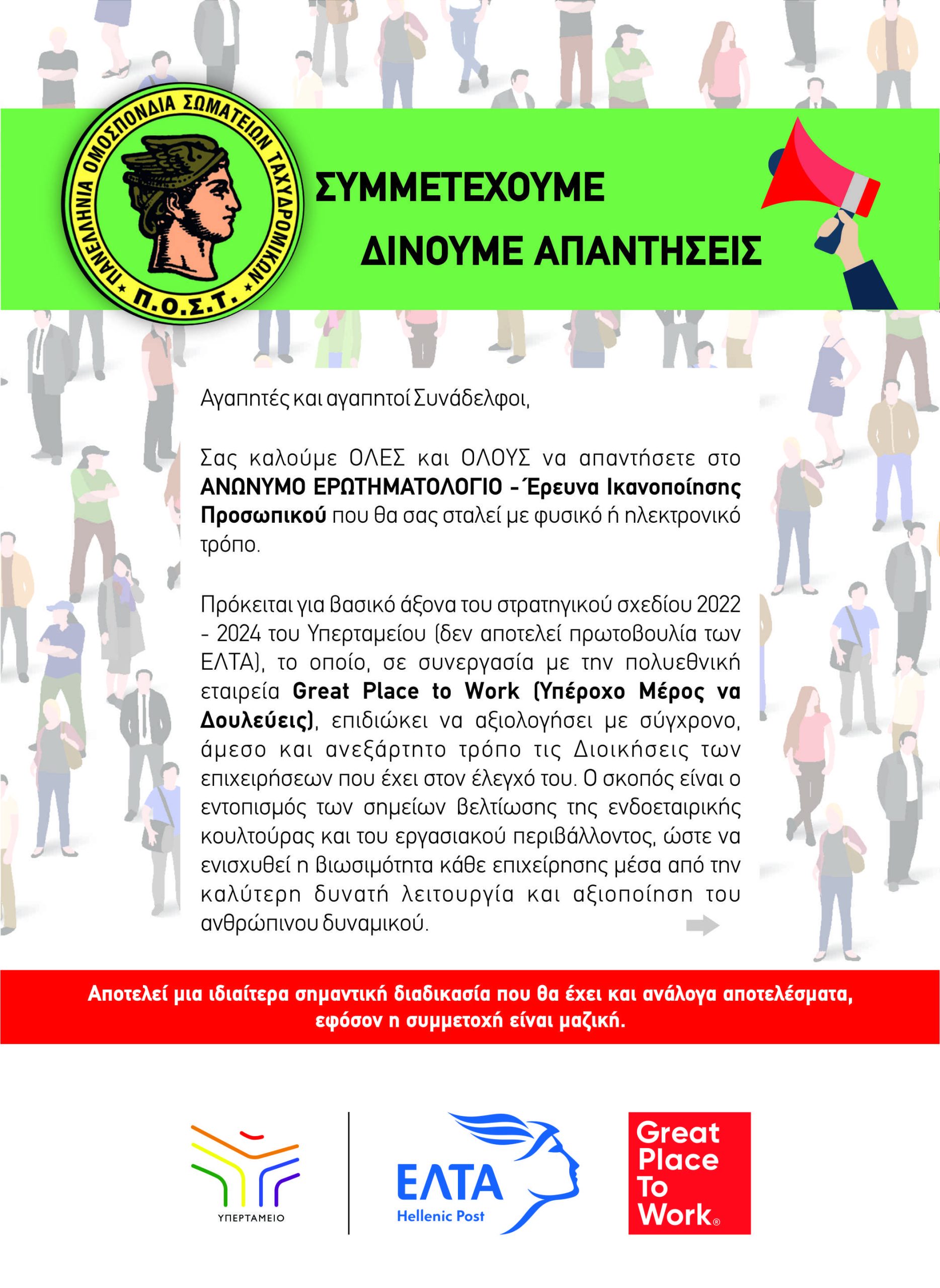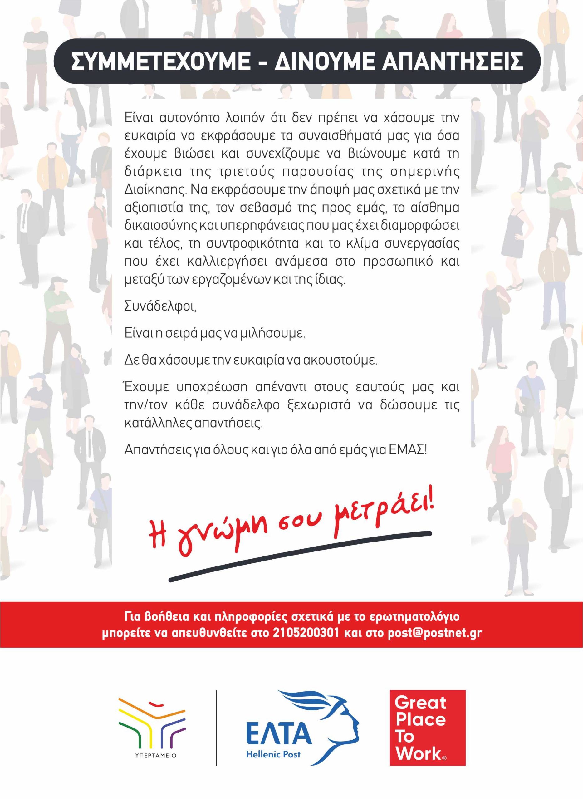 Έρευνα Ικανοποίησης Προσωπικού: ΣΥΜΜΕΤΕΧΟΥΜΕ – ΔΙΝΟΥΜΕ ΑΠΑΝΤΗΣΕΙΣ