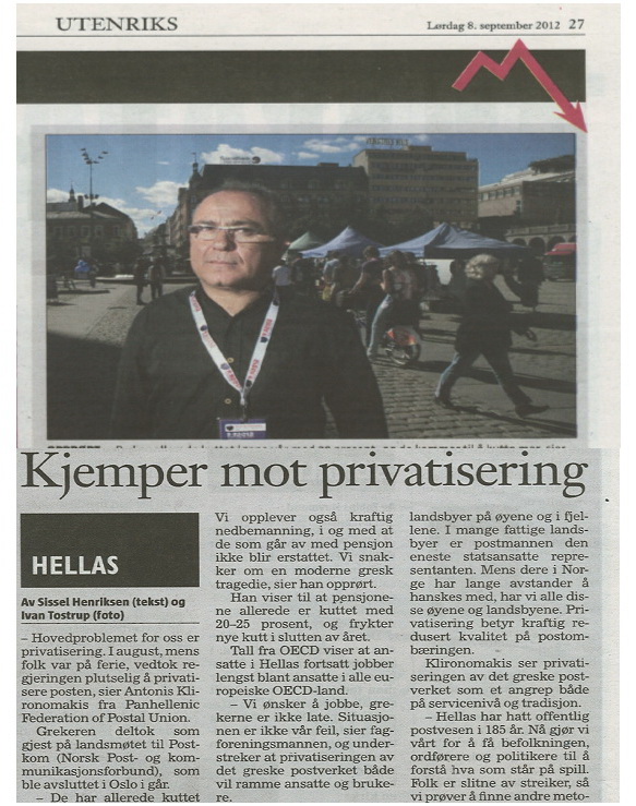 Οι θέσεις αυτές διατυπώθηκαν και με συνεντεύξεις από το Γραμματέα Διεθνών Σχέσεων της ΠΟΣΤ, τόσο στον έντυπο τύπο, όσο και στα ηλεκτρονικά ΜΜΕ της Νορβηγίας.