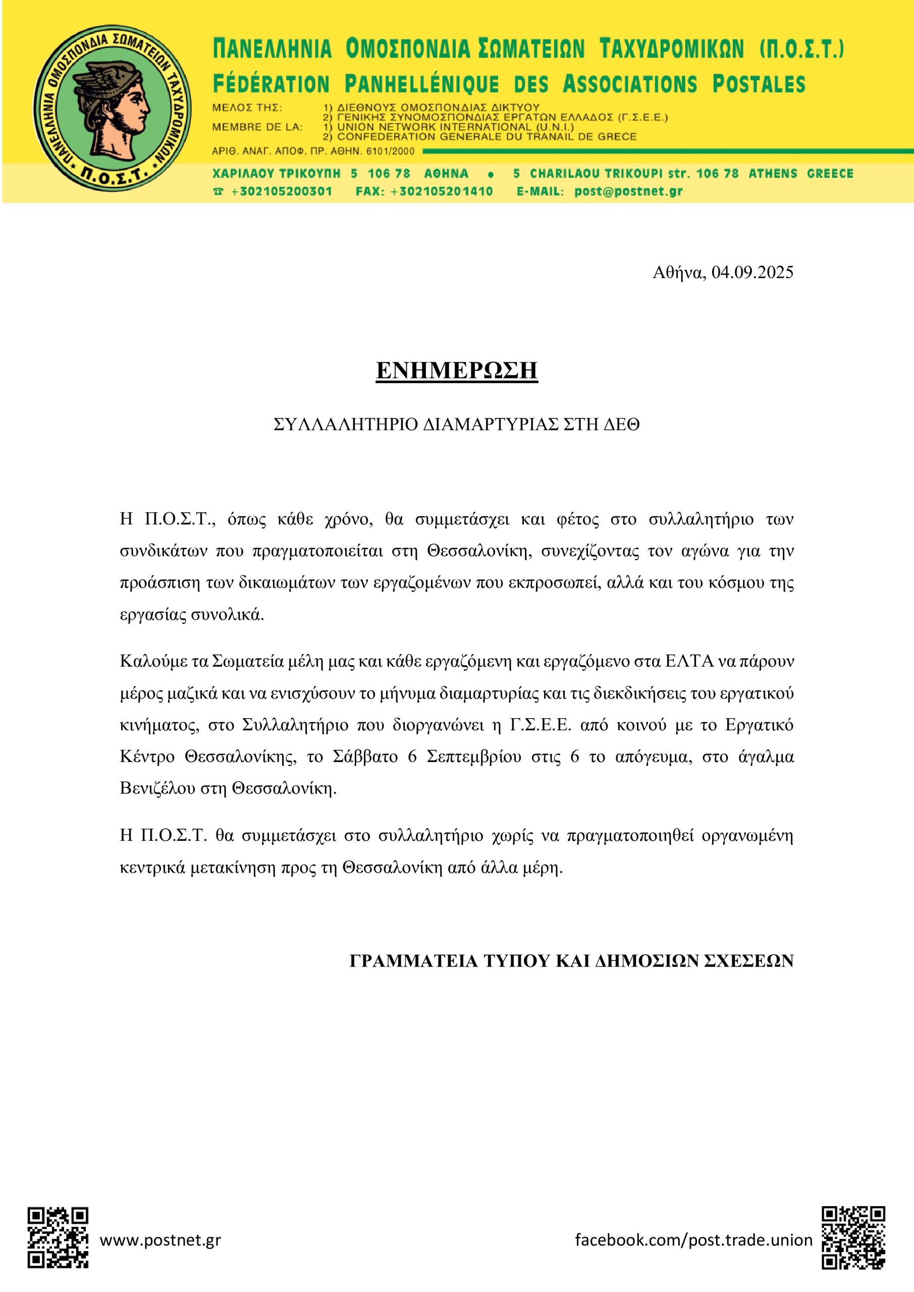 ΑΝΑΚΟΙΝΩΣΕΙΣ • 4 ΣΕΠΤΕΜΒΡΙΟΥ 2025