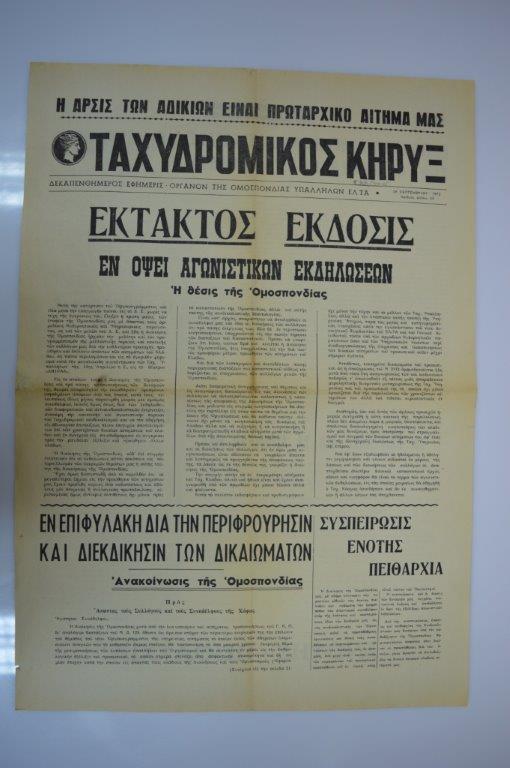 Με τον παραπάνω τίτλο κυκλοφόρησε ως έκτακτη έκδοση η Δεκαπενθήμερος εφημερίδα της Ομοσπονδίας Υπαλλήλων ΕΛ.ΤΑ. «ΤΑΧΥΔΡΟΜΙΚΟΣ ΚΗΡΥΞ», στις 26 Σεπτεμβρίου 1975/αρ. φυλ. 53. Το σύνολο των αιτημάτων του κλάδου περιλαμβάνονταν στο ψήφισμα της μεγάλης συγκέντρωσης που πραγματοποιήθηκε στο θέατρο «ΑΜΙΡΑΛ» στις 14 Απριλίου 1975.