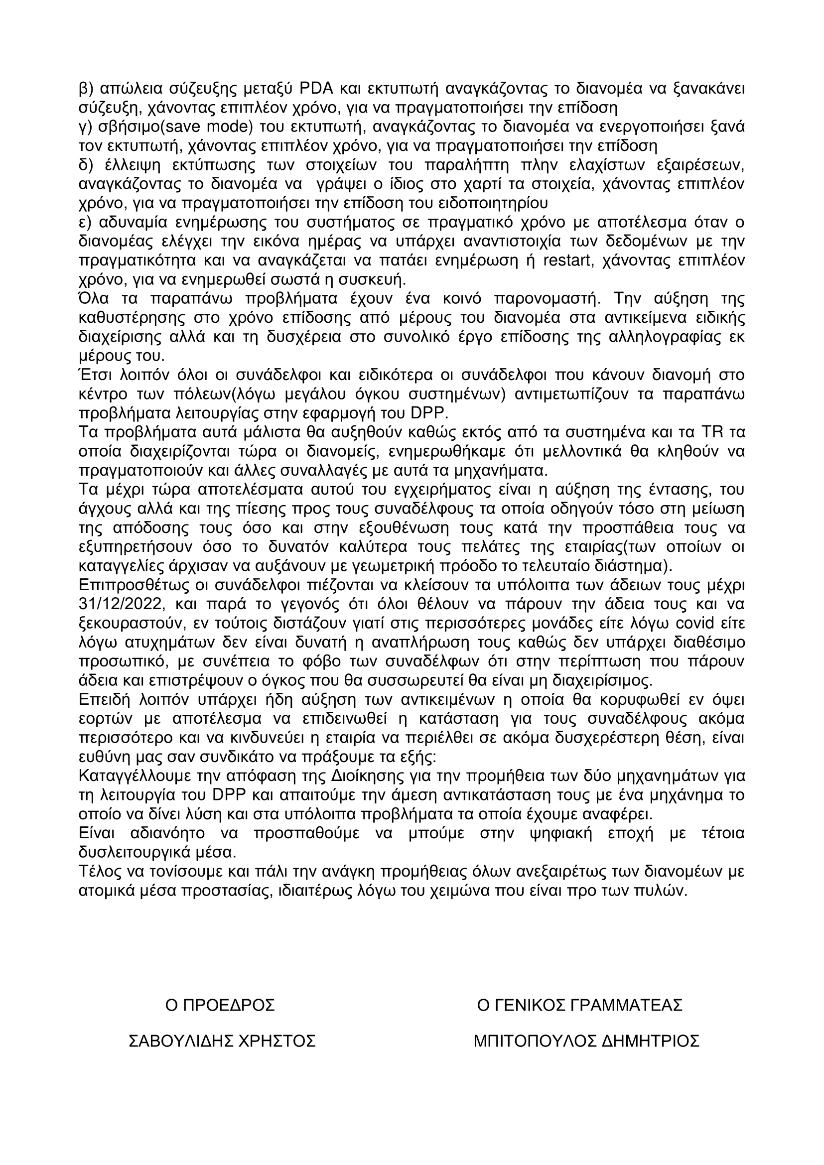 Καταγγελία Πανελληνίου Συλλόγου Οδηγών - Τεχνιτών ΕΛΤΑ κατά του Γενικού Διευθυντή Υποστηρικτικών Λειτουργιών