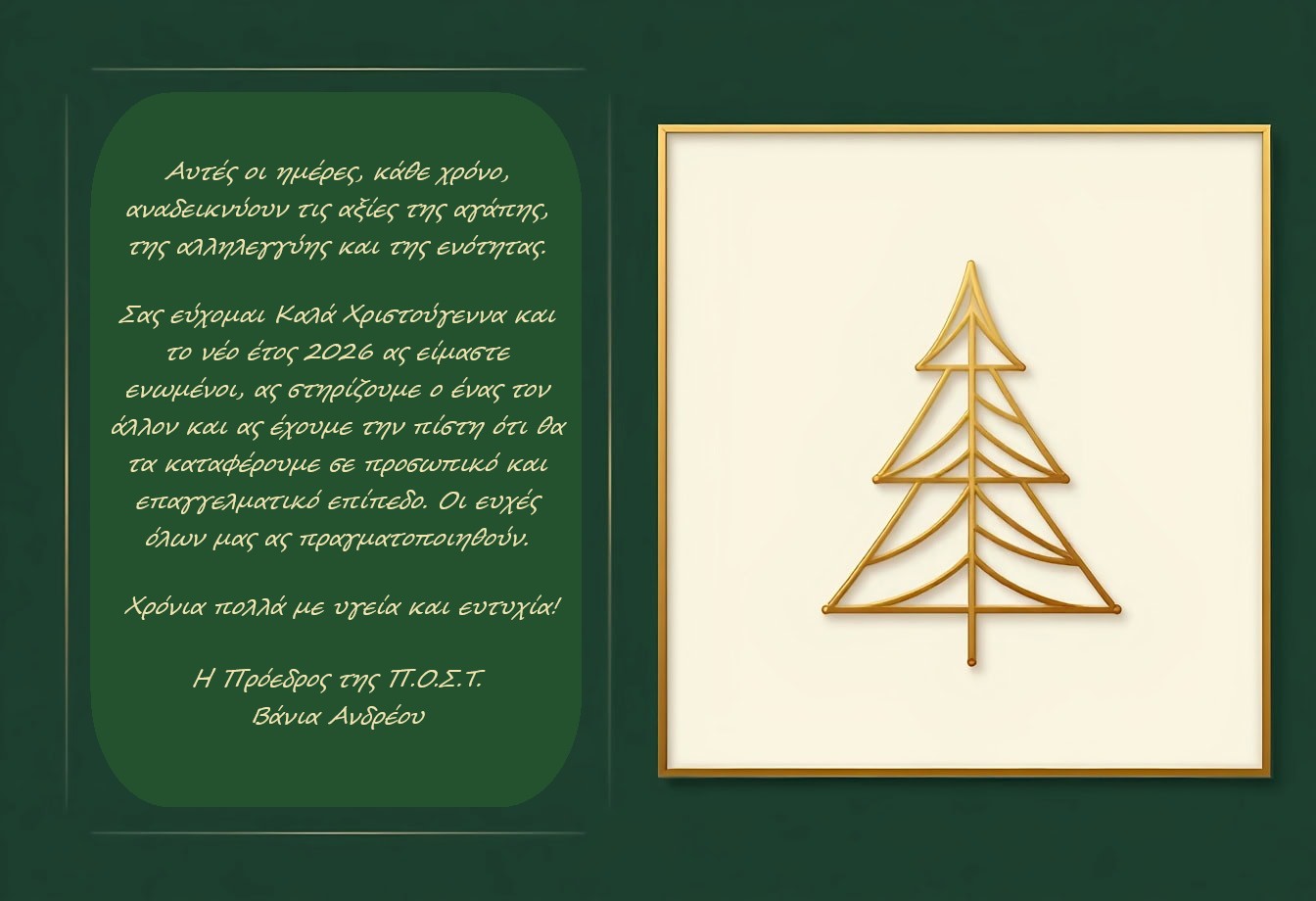 Ευχές από την Πρόεδρο της Π.Ο.Σ.Τ.